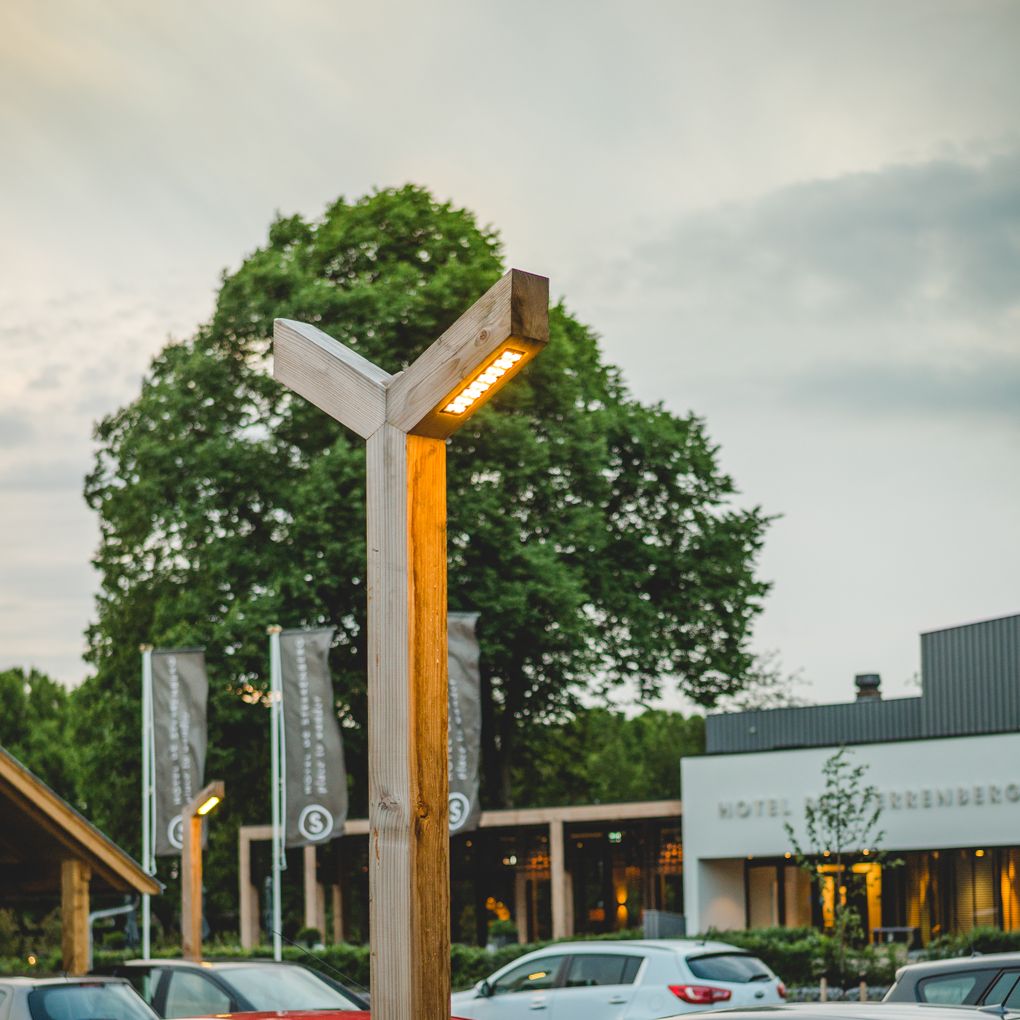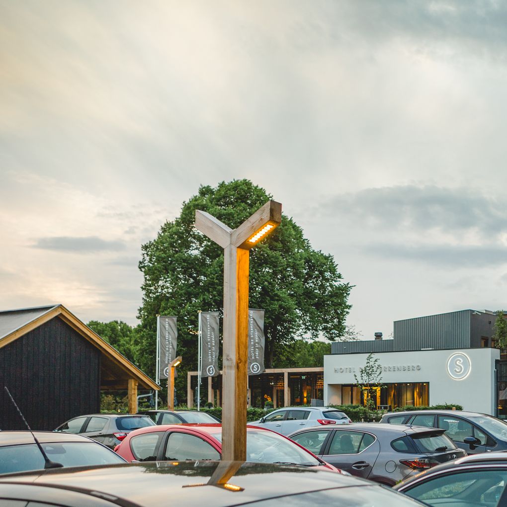 STERRENBERG houten hotel parkeerplaats verlichting